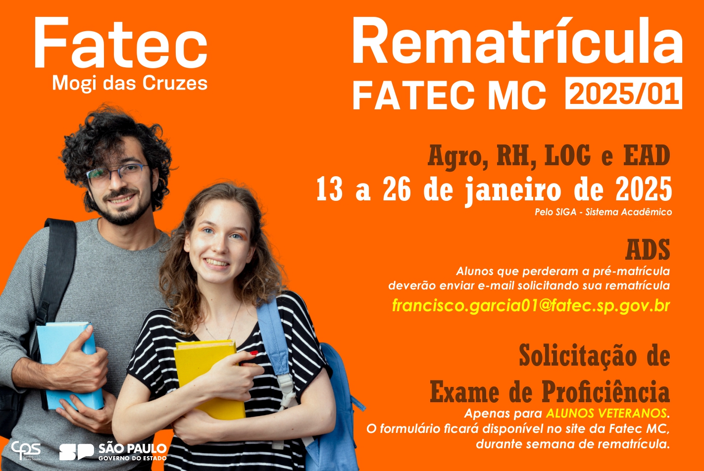 REMATRÍCULA: DE 13 A 26 DE JANEIRO DE 2025